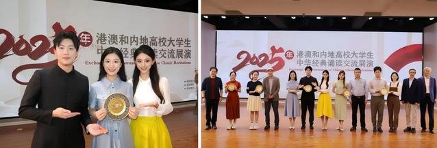 此外,22主持肖倬睿、郭书豪《两千年前的闪击》,23主持张之一、侯思明《黎明的赞歌》获优秀作品奖。以中华经典诵读为纽带的内地与港澳交流展演,对三地学子而言,诵读是在声情并茂的演绎中触摸中华文化的根脉,是对历史的铭记,也是对“家国”二字的重新理解。